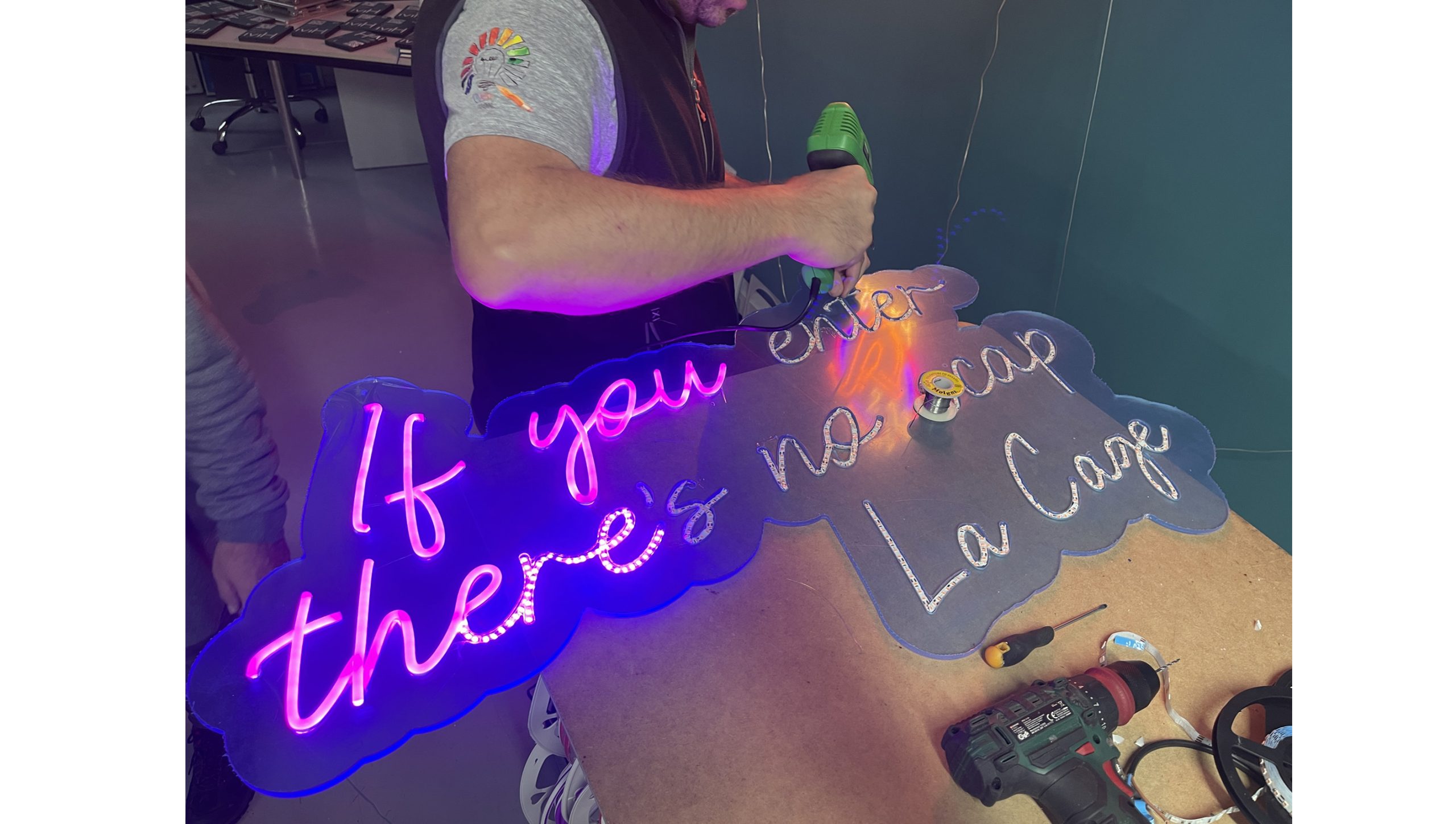 Es la versión moderna de los tradicionales rótulos de neón. A diferencia de estos, fabricados en cristal, se trata de tiras LED flexibles. Su avanzada tecnología proporciona un efecto lumínico homogéneo, sin puntos negros, y un gran ahorro de consumo energético.